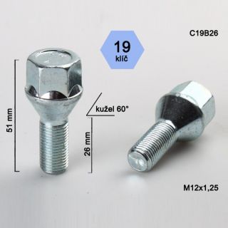 Šroub M12x1,25x26 kužel, klíč 19, výška 51